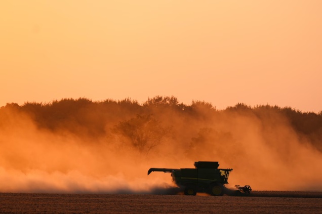 美国印第安纳州沃伦的一个农场正在收获大豆。 (《华盛顿邮报》报道截图)