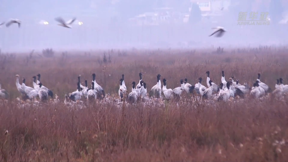 日前,贵州草海国家级自然保护区开始进入“高原精灵”黑颈鹤的越冬高峰。截至12月1日,保护区共记录黑颈鹤2400余只,与往年同期相比稳步增长。与灰鹤、白头雁等候鸟一起,数以万计的候鸟聚集于此,形成了草海充满活力的生态景观。记者:崔小强 摄影:文旭 新华社音像部出品