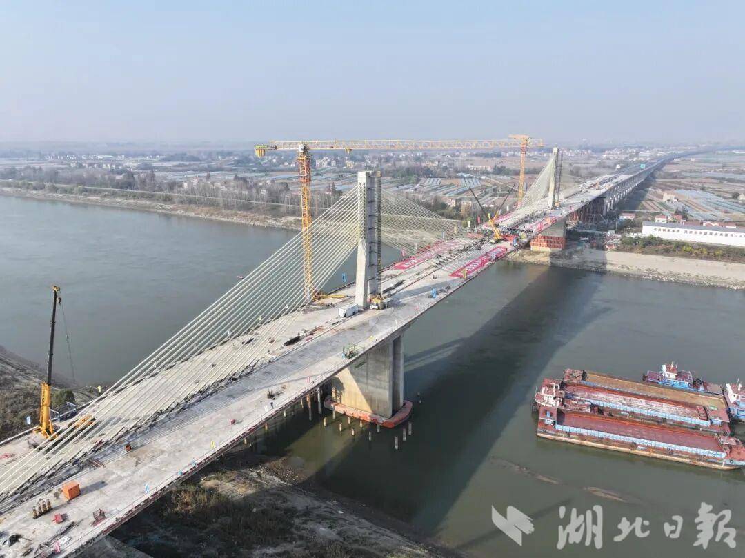 湖北日报讯(记者王洋、甄子轩、致信刘高宇、桂静)12月8日,随着混凝土最后浇筑完成,武天高速公路重点控制工程——马口汉江特大桥主桥合龙。合龙后的大桥横跨汉江,犹如彩虹卧波,标志着武田高速公路全线竣工,为全线通车奠定了坚实的基础。